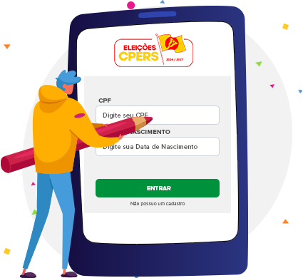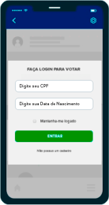 Ao acessar a página de votação através de seu computador ou smartphone digite seu CPF e Data de Nascimento no campo indicado para fazer login.