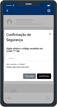 Confirme se o código foi recebido por SMS.